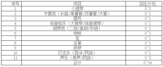 根据我校艺术团建设和发展需要,按照“择优录取、宁缺毋滥”的原则,设定2022年高水平艺术团招生计划不超过14人。具体计划如下: